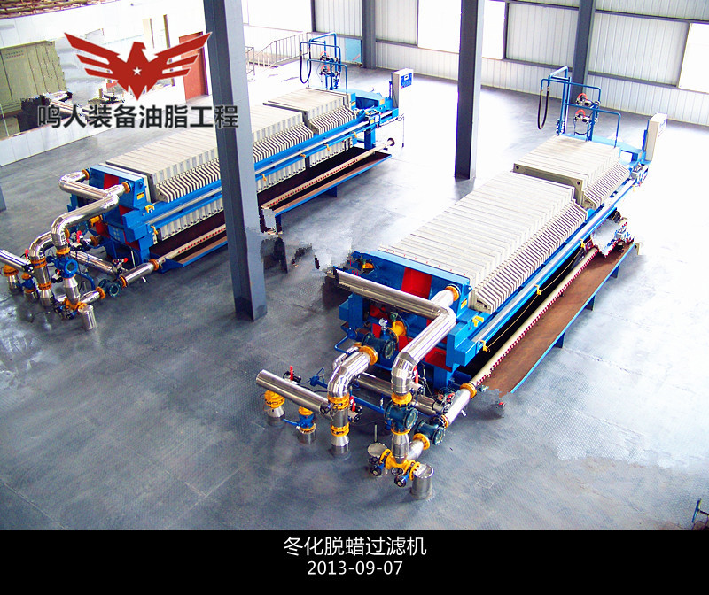 冷凍低溫過(guò)濾即單靠冷凍結(jié)晶,然后用機(jī)械方法分離油、蠟而不加任何輔助劑和輔助手段的脫蠟方法。分離時(shí)采用加壓過(guò)濾、真空過(guò)濾和離心分離等設(shè)備。此法**簡(jiǎn)單的是一次結(jié)晶、過(guò)濾法。將油脂(溫度在 50℃以上)移入有冷卻裝置的結(jié)晶養(yǎng)晶罐,慢速攪拌,在常壓下充分冷至25℃。整個(gè)冷卻結(jié)晶時(shí)間為24h,然后過(guò)濾分離油、蠟雜質(zhì)。過(guò)濾壓強(qiáng)維持在 0.3–0.35MPa,過(guò)濾后要及時(shí)用壓縮空氣吹出蠟中夾帶的油脂。